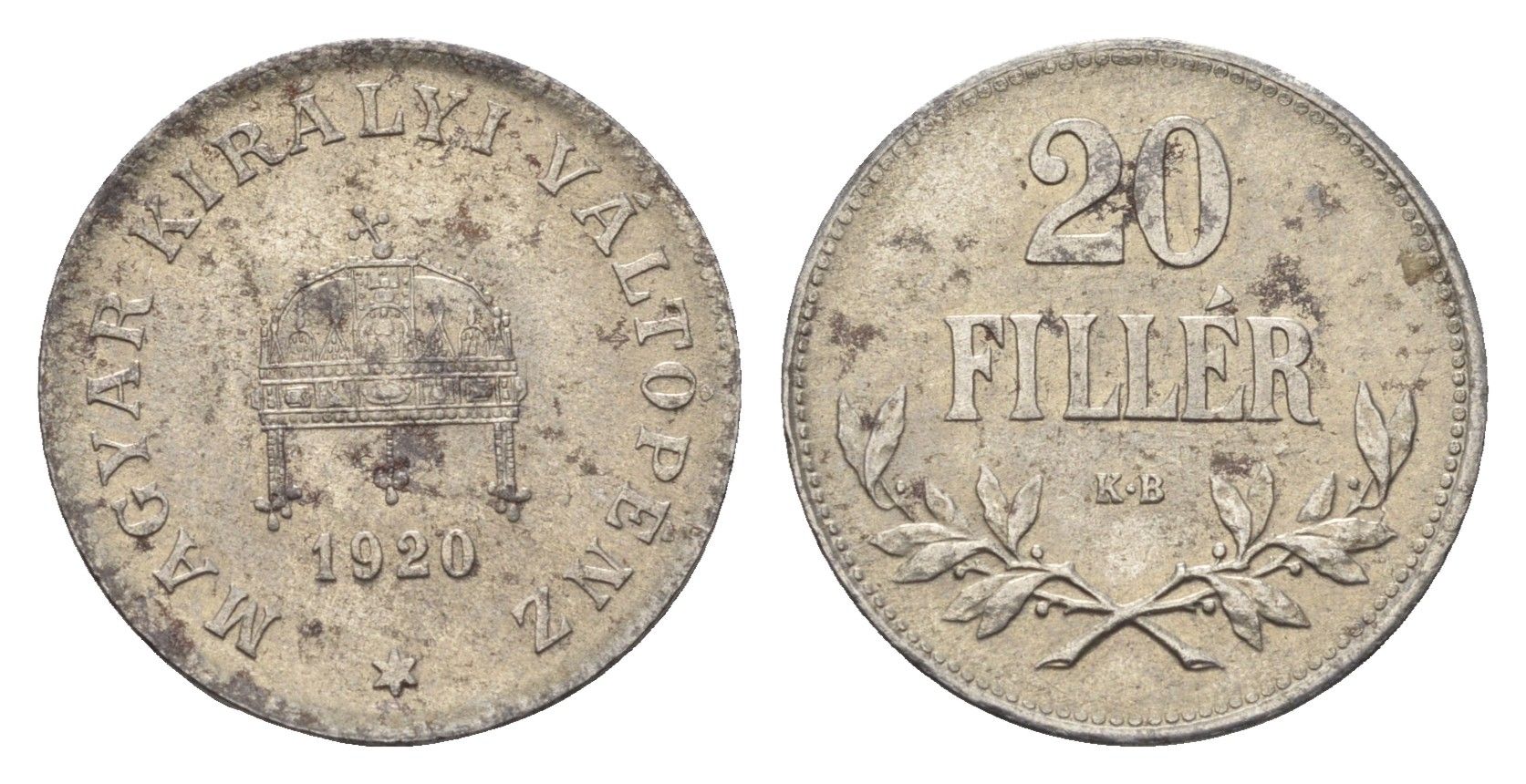 Венгрия 20 филлеров 1920 КВ, Карл I (1916-1918), редкий год KM 498 железо UNC 5010-2045