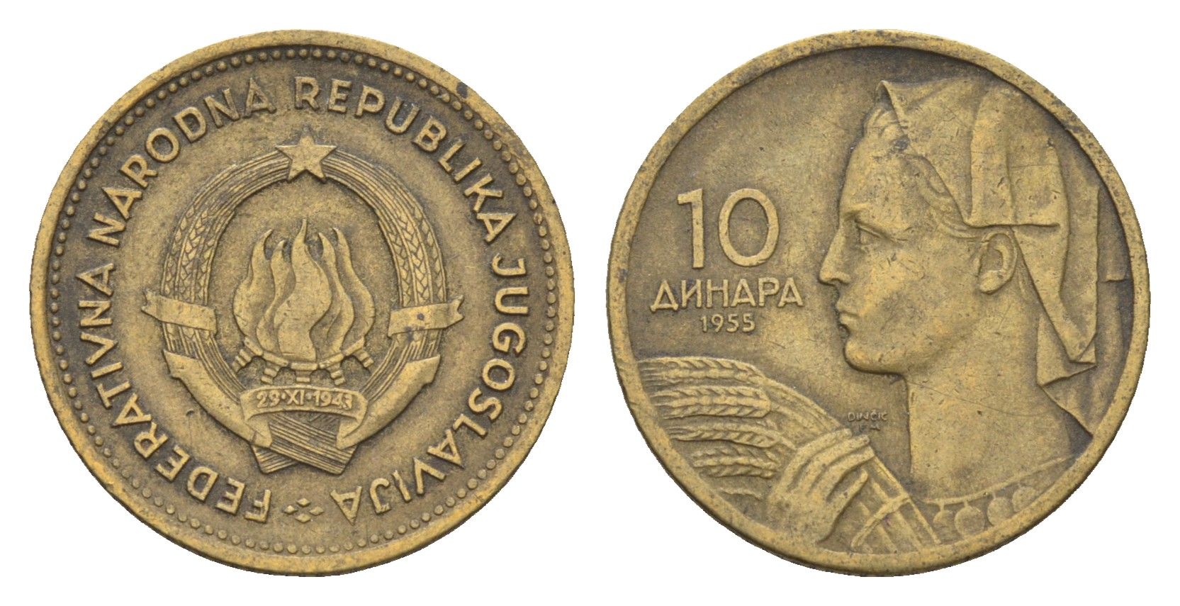 Югославия 10 динаров 1955 KM 33 алюминиевая бронза 4674-447