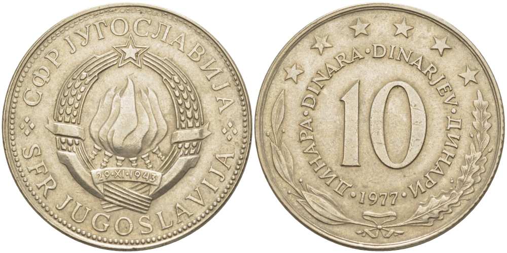 ЮГОСЛАВИЯ 10 ДИНАРОВ 1977 KM 62 медно-никель 4512-646