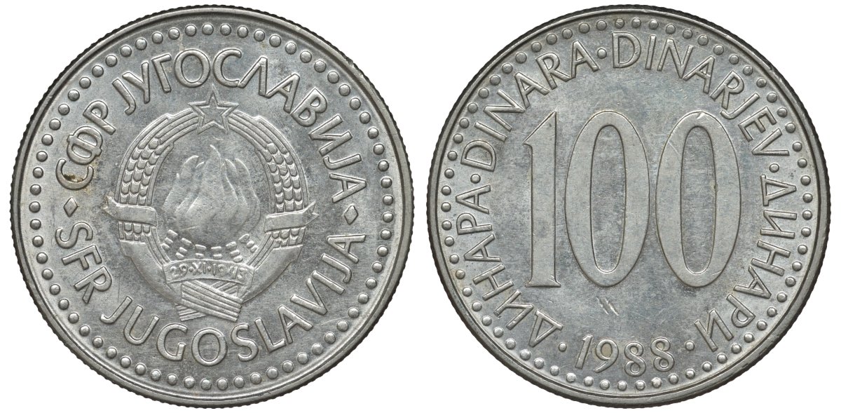 Югославия 100 динаров 1988 KM 114 медь никель цинк 4144-1243
