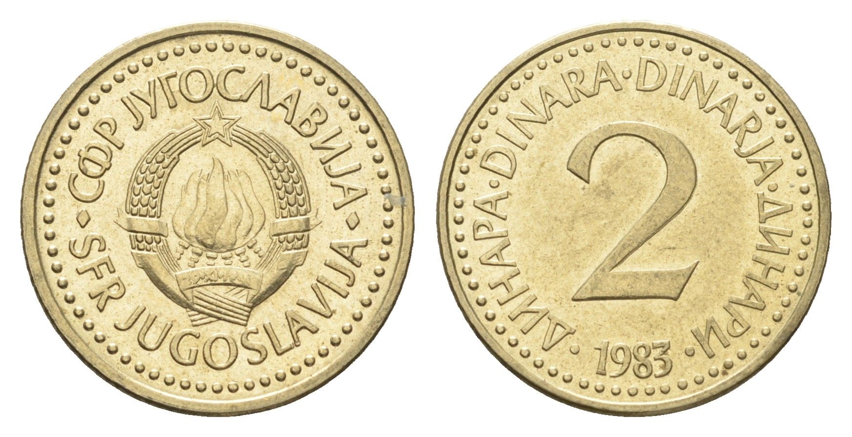 Югославия 2 динара 1983 KM 87 никель латунь 4659-817