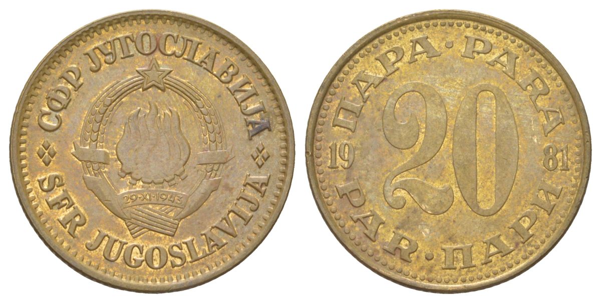 Югославия 20 пара 1981 KM 45 латунь 4627-944
