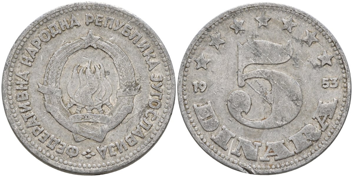 Югославия 5 динаров 1953 KM 32 алюминий 4155-1025