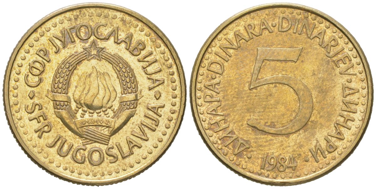 Югославия 5 динаров 1984 KM 88 никель латунь 4591-755
