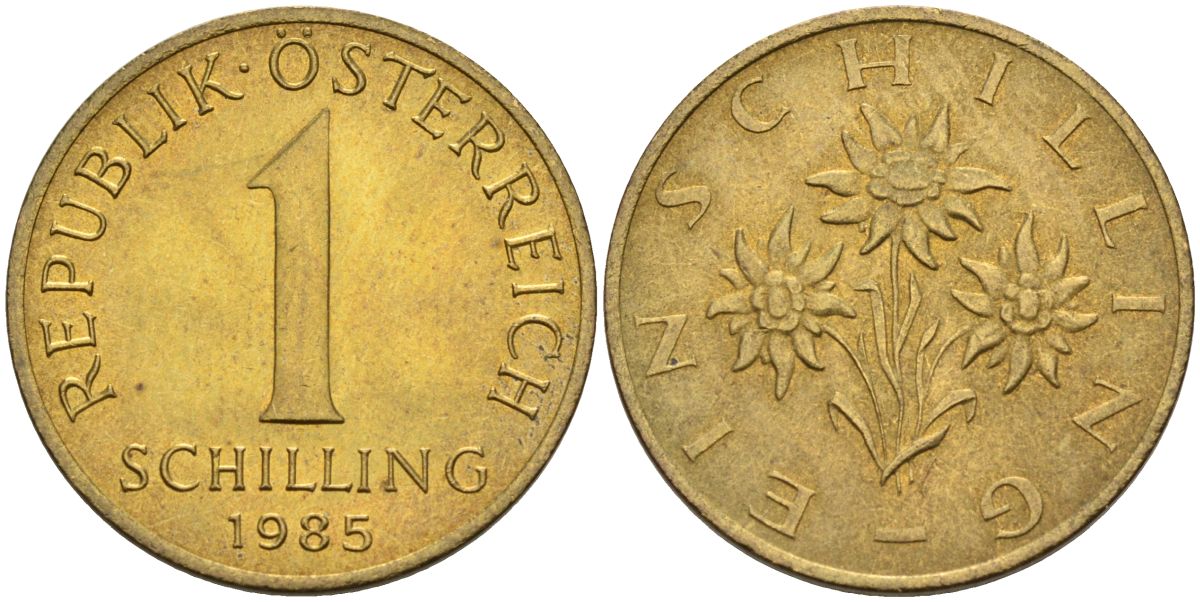 Австрия 1 шиллинг 1985 KM 2886 алюминиевая бронза 4592-1027