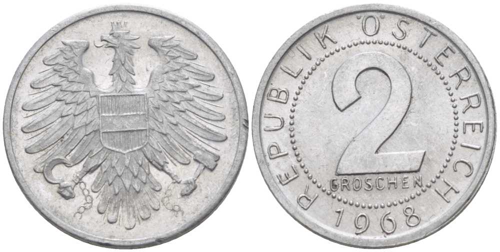 АВСТРИЯ 2 ГРОША 1968 KM 2876 алюминий 66-365
