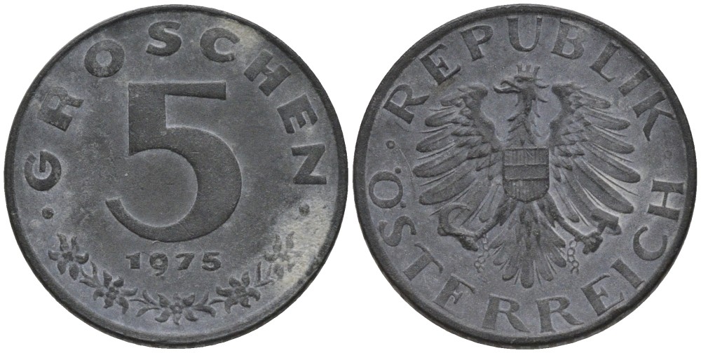 Австрия 5 грошей 1975 KM 2875 цинк 116-611