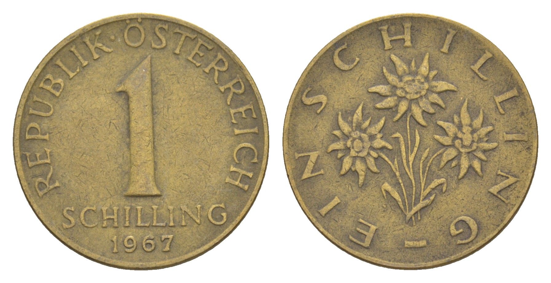 Австрия 1 шиллинг 1967 KM 2886 алюминиевая бронза 4561-146