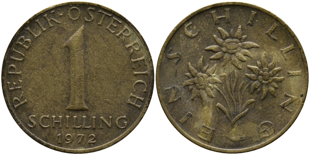 АВСТРИЯ 1 ШИЛЛИНГ 1972 KM 2886 алюминиевая бронза 33-511