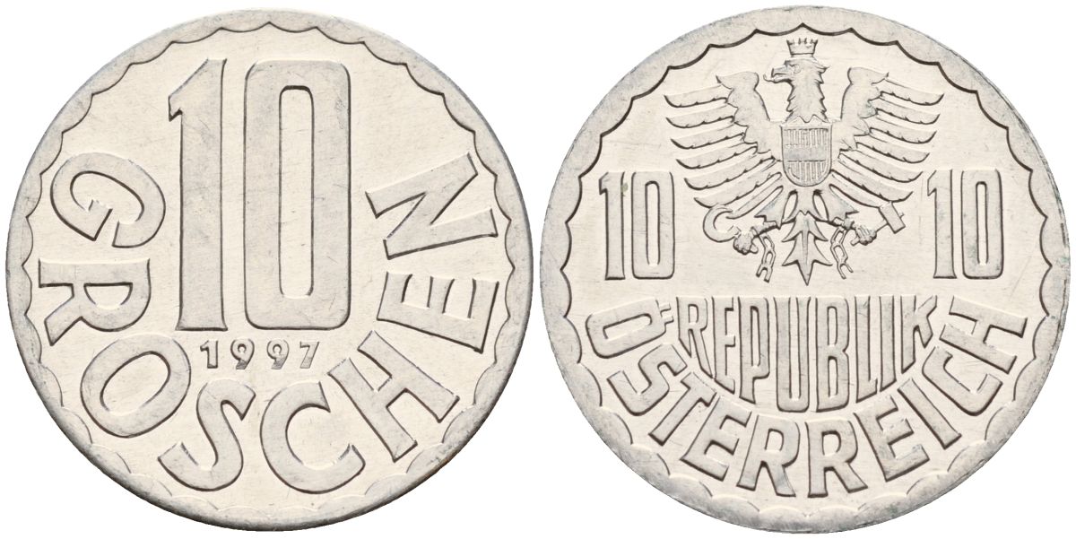 Австрия 10 грошей 1997 KM 2878 алюминий 4152-517