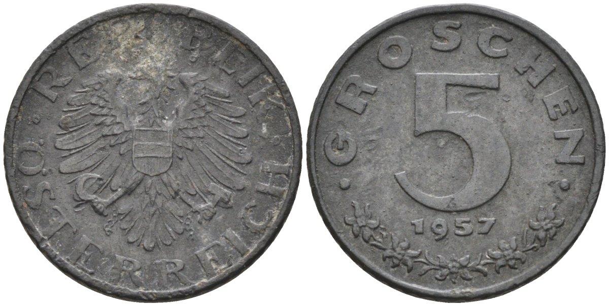 Австрия 5 грошей 1957 KM 2875 цинк 4580-221