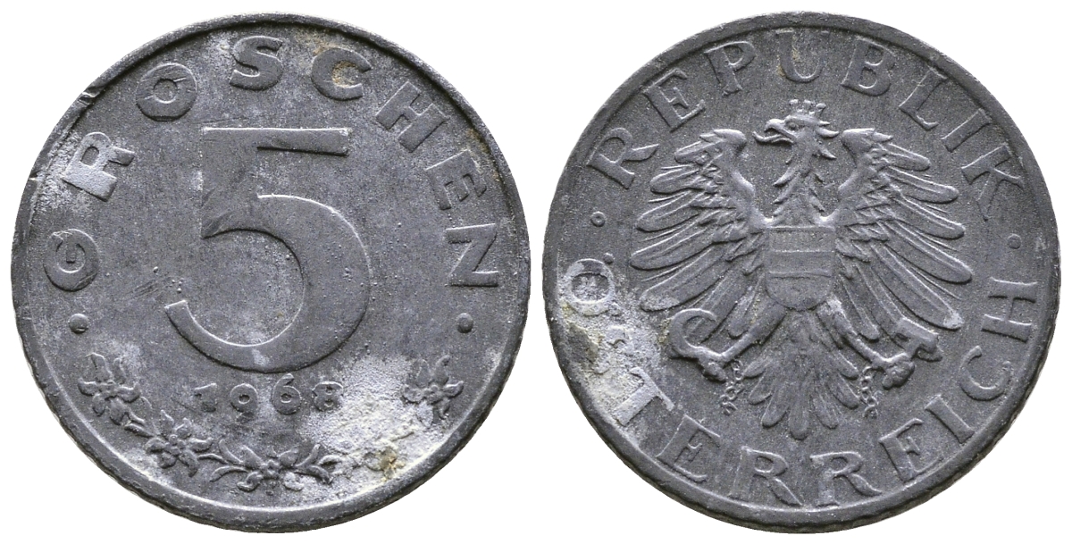 АВСТРИЯ 5 ГРОШЕЙ 1968 KM 2875 цинк 57-1159