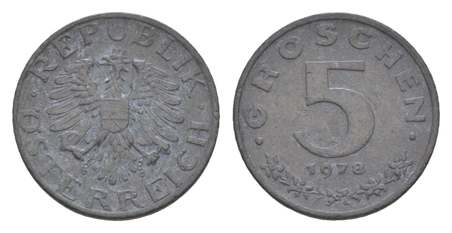 Австрия 5 грошей 1978 KM 2875 цинк 4528-413