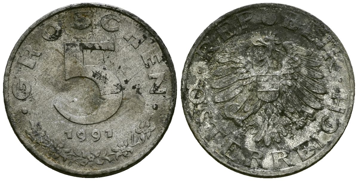 Австрия 5 грошей 1991 KM 2875 цинк 4167-234