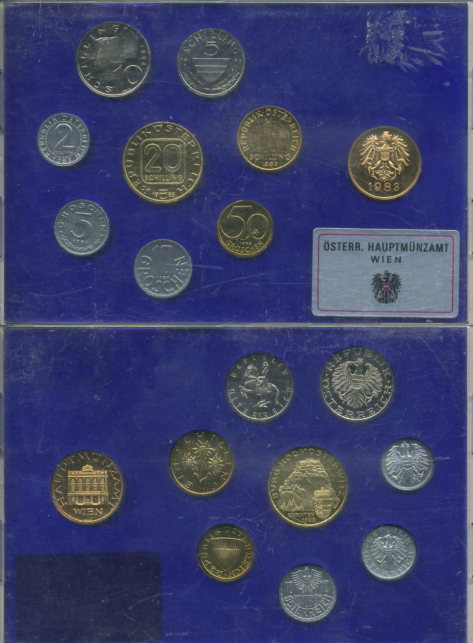 Австрия набор из 8 монет + жетон мондвора 1983 официальный набор, 2, 5, 10, 50 грошей, 1, 5, 10, 20 шиллингов, замок Хохостервиц, в пластике KM PS 40 PROOF 6-6-2-4