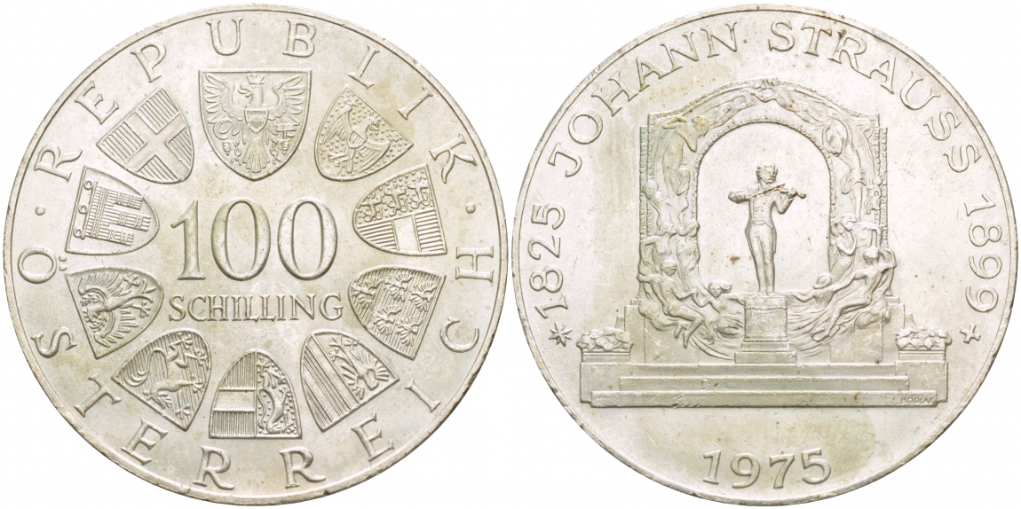 Австрия 100 шиллингов 1975 150 лет со дня рождения Иоганна Штрауса KM 2923 серебро 443-315