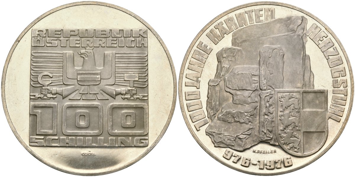 Австрия 100 шиллингов 1976 1000 лет земле Каринтия KM 2931 серебро PROOF 02-118-25