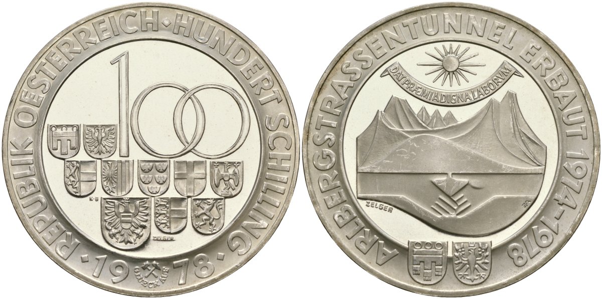 Австрия 100 шиллингов 1978 открытие Арльбергского тоннеля KM 2941 серебро PROOF 02-222-11