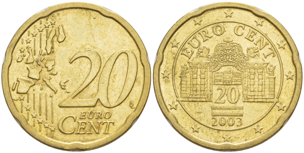АВСТРИЯ 20 ЕВРОЦЕНТОВ 2003 KM 3086 латунь 4543-143