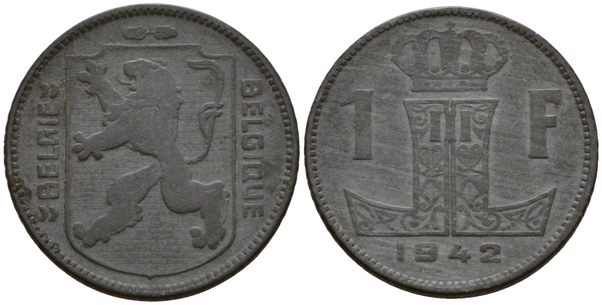 Бельгия 1 франк 1943 Belgie - Belgique KM 128 цинк 65-934