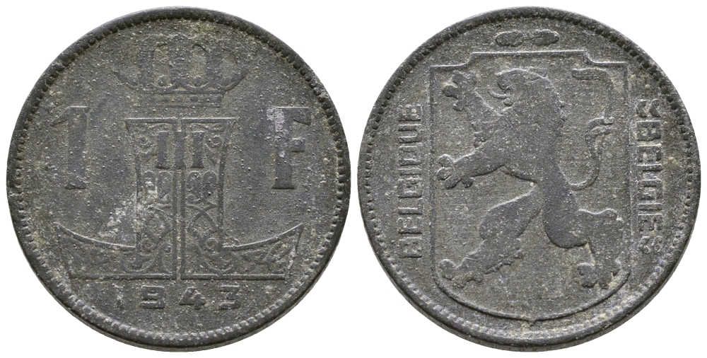 БЕЛЬГИЯ 1 ФРАНК 1943 BELGIQUE-BELGIE KM 127 цинк 177-1044
