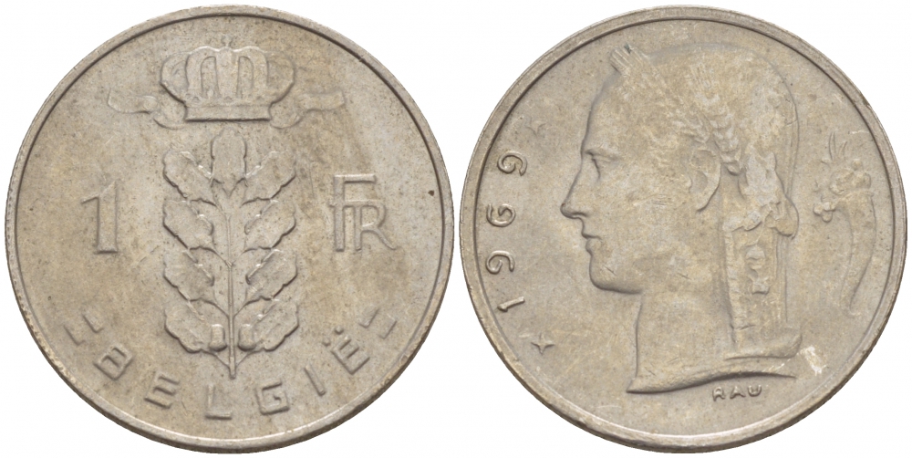 БЕЛЬГИЯ 1 ФРАНК 1969 BELGIE KM 143.1 медно-никель 4544-813