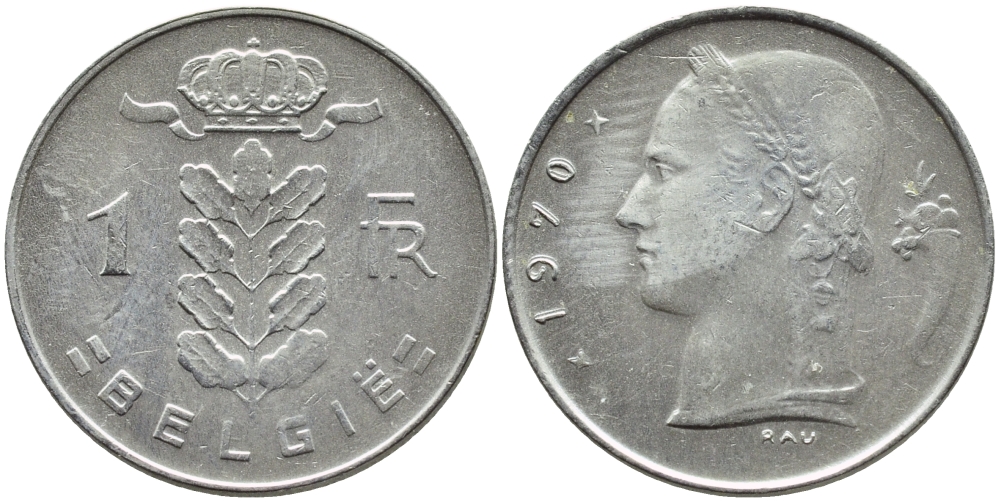 БЕЛЬГИЯ 1 ФРАНК 1970 BELGIE KM 143.1 медно-никель 4385-447