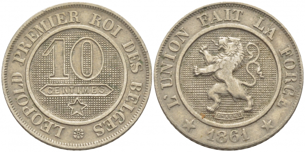 БЕЛЬГИЯ 10 САНТИМОВ 1861 BELGES KM 22 медно-никель 4448-814