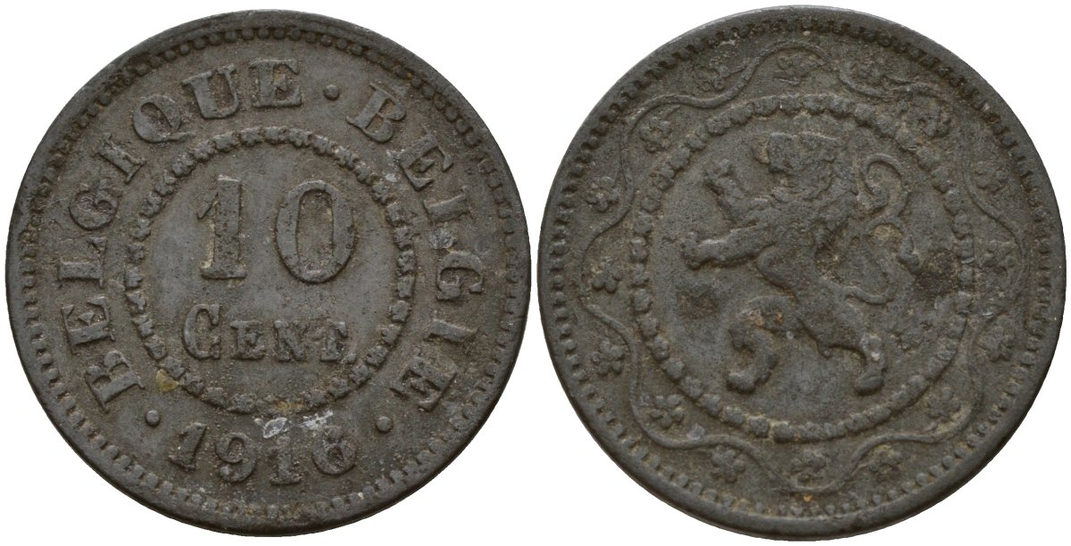 Бельгия 10 сантимов 1916 KM 81 цинк 4187-932