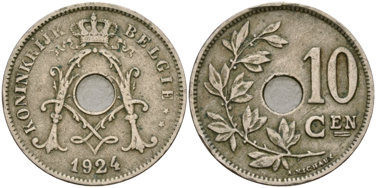 Бельгия 10 сантимов 1924 Belgie KM 86 медно-никель 4135-1017