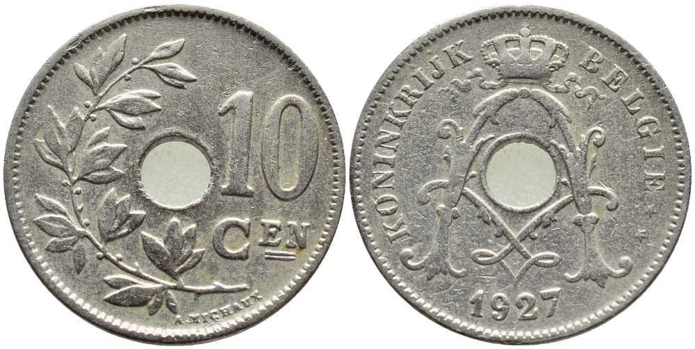 БЕЛЬГИЯ 10 САНТИМОВ 1927 BELGIE KM 86 медно-никель 86-934