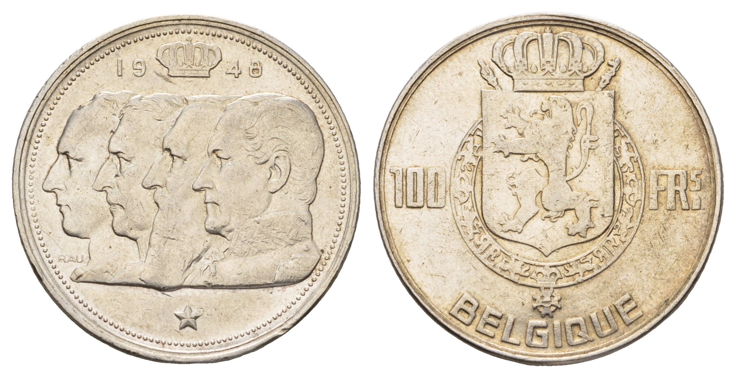 Бельгия 100 франков 1948 Леопольд III (1934-1950), Belgique KM 138 серебро 1519-741