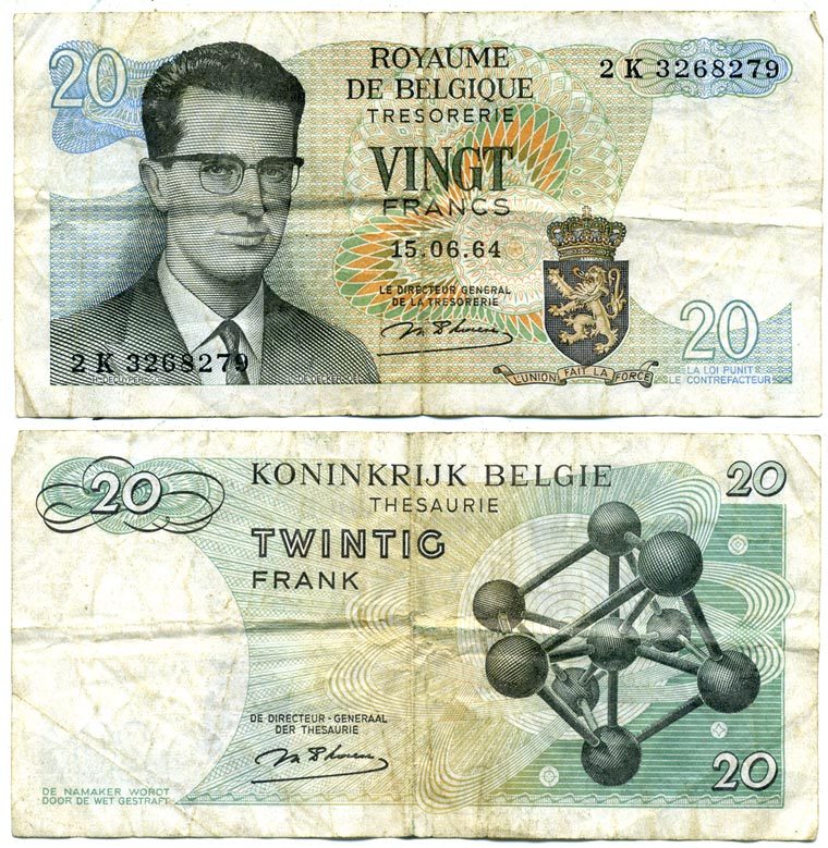 Бельгия 20 франков 1964 Бодуэн I, атомиум, d Haeze Pick 138 (1) бумага 7204-4-1-1