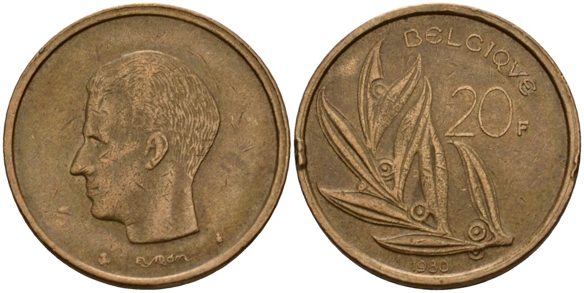Бельгия 20 франков 1980 Belgique, Бодуэн I (1951-1993) KM 159 никель бронза 4601-332