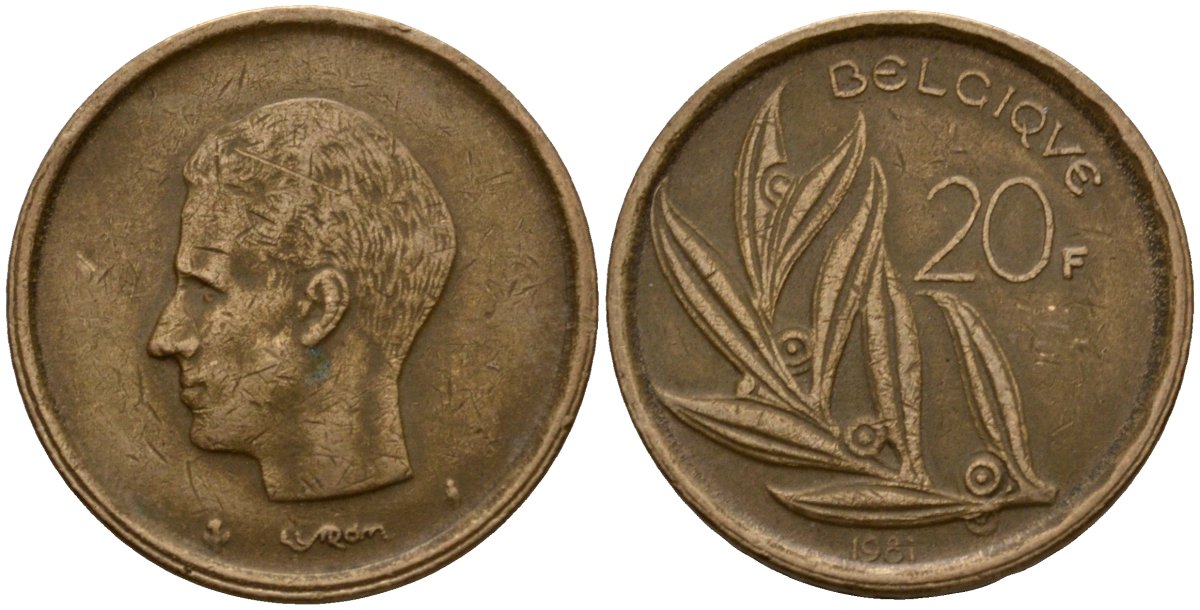 Бельгия 20 франков 1981 Belgique, Бодуэн I (1951-1993) KM 159 никель бронза 4601-336