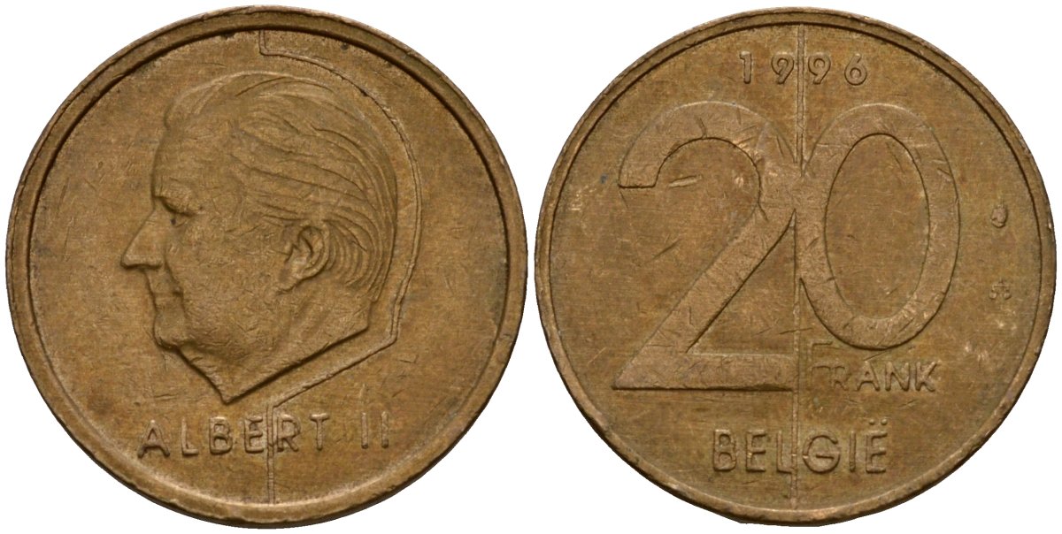 Бельгия 20 франков 1996 Belgie, Альберт II (1994-2013) KM 192 никель бронза 4599-232