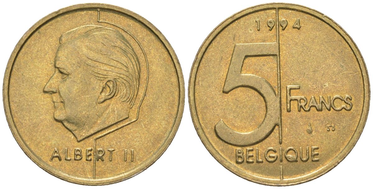 Бельгия 5 франков 1994 Belgique, Альберт II (1994-2013) KM 189 алюминиевая бронза 4616-944