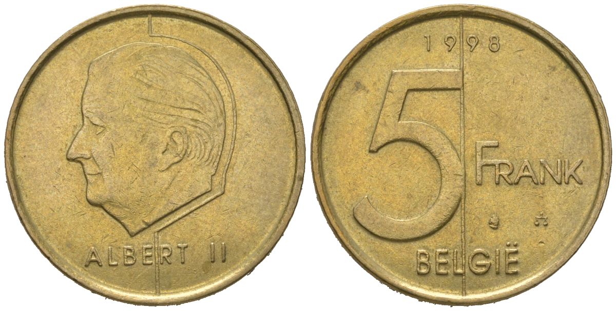 Бельгия 5 франков 1998 Belgie, Бодуэн I (1951-1993) KM 190 алюминиевая бронза 4620-532