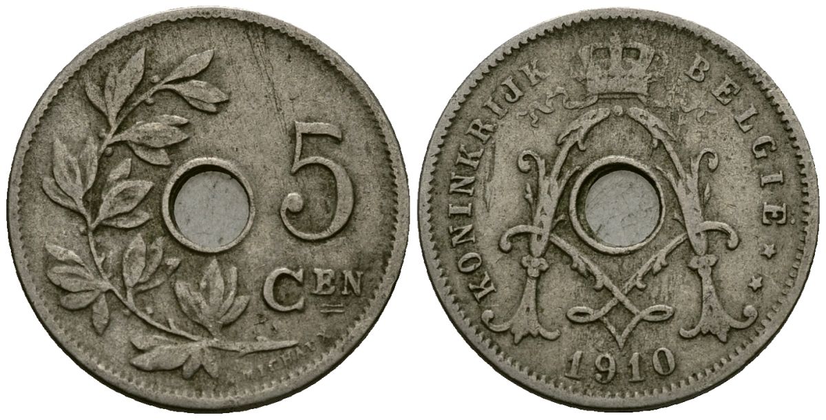 Бельгия 5 сантимов 1910 Belgie KM 67 медно-никель 4173-167
