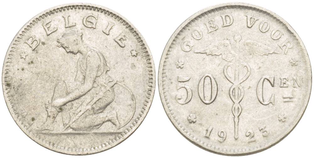 БЕЛЬГИЯ 50 САНТИМОВ 1923 BELGIE KM 88 никель 4546-214