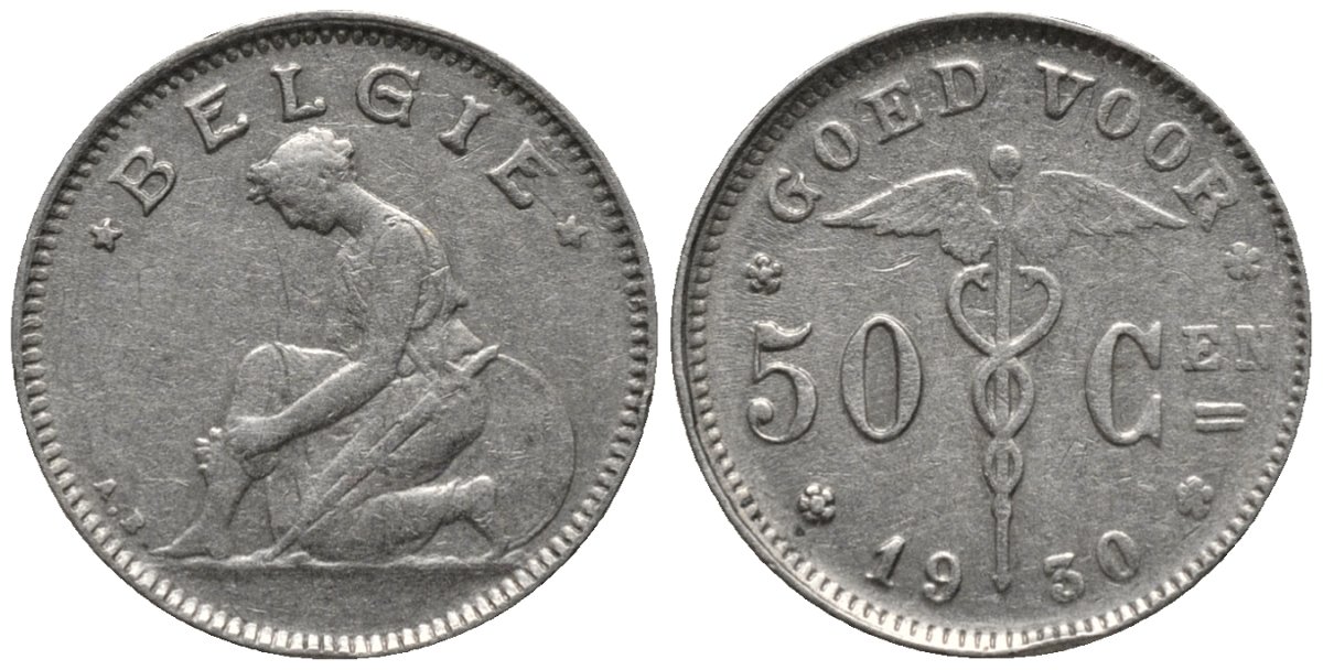 Бельгия 50 сантимов 1930 Belgie, Альберт I (1910-1934) KM 88 никель 4579-1255