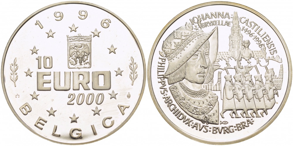 Бельгия 10 евро 2000 Хуана Кастильская UC# 324 серебро PROOF 06-271-42