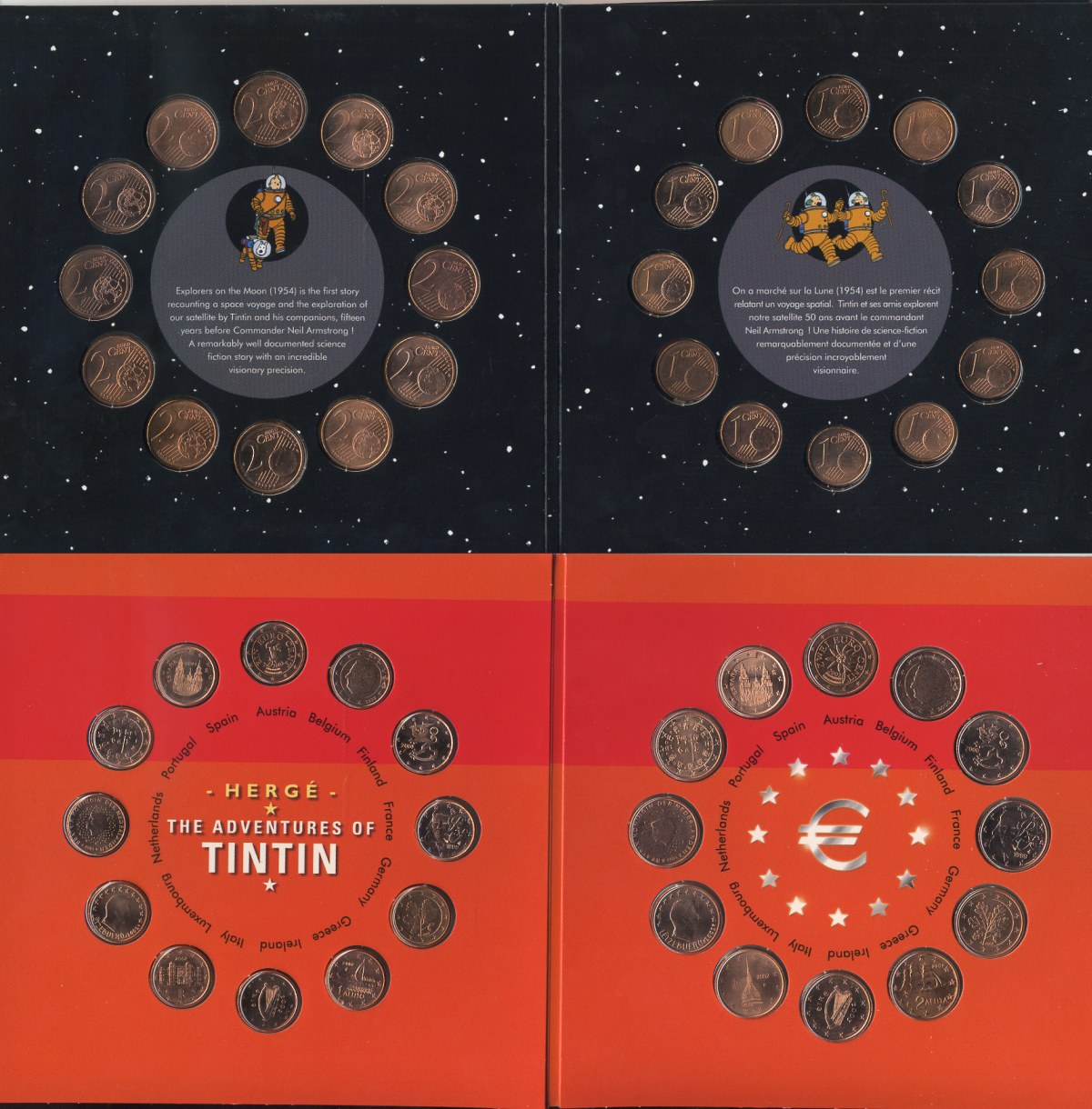 БЕЛЬГИЯ НАБОР ИЗ 24 МОНЕТ + ЖЕТОН 2004 50 ЛЕТ ПЕРВОЙ РАКЕТЕ НА ЛУНЕ, TINTIN, 12 МОНЕТ ПО 1 ЕВРОЦЕНТУ, СТРАН ВСТУПИВШИХ В ЕВРОСОЮЗ И 12 МОНЕТ ПО 2 ЕВРОЦЕНТА,СТРАН ВСТУПИВШИХ В ЕВРОСОЮЗ, ТИРАЖ 10000 ЭКЗ., ЖЕТОН СЕРЕБРО, В ОРИГИНАЛЬНОМ БУКЛЕТЕ, С СЕРТИФИКАТО