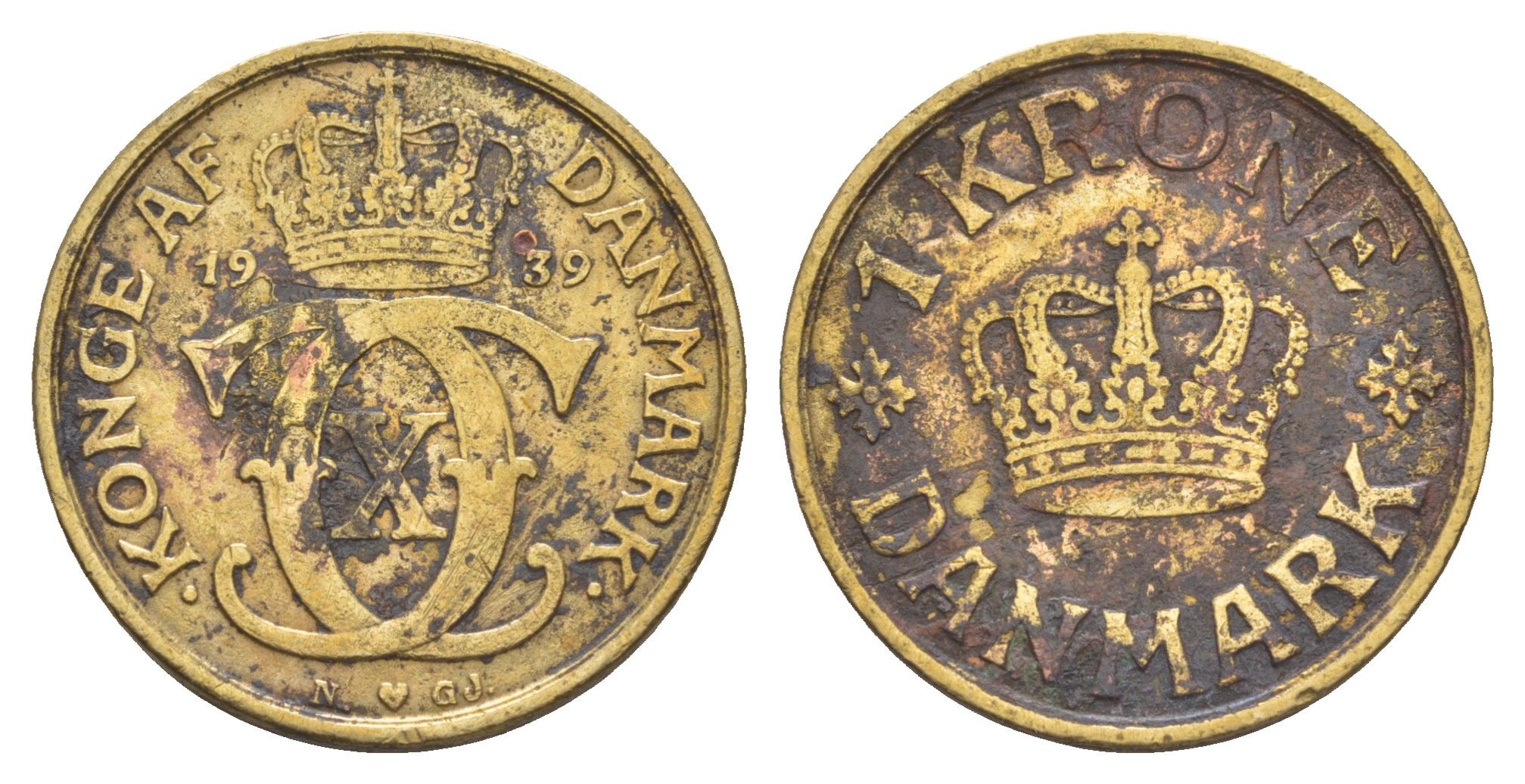 Дания 1 крона 1939 N, Кристиан X (1912-1947) KM 824 алюминиевая бронза 4657-351