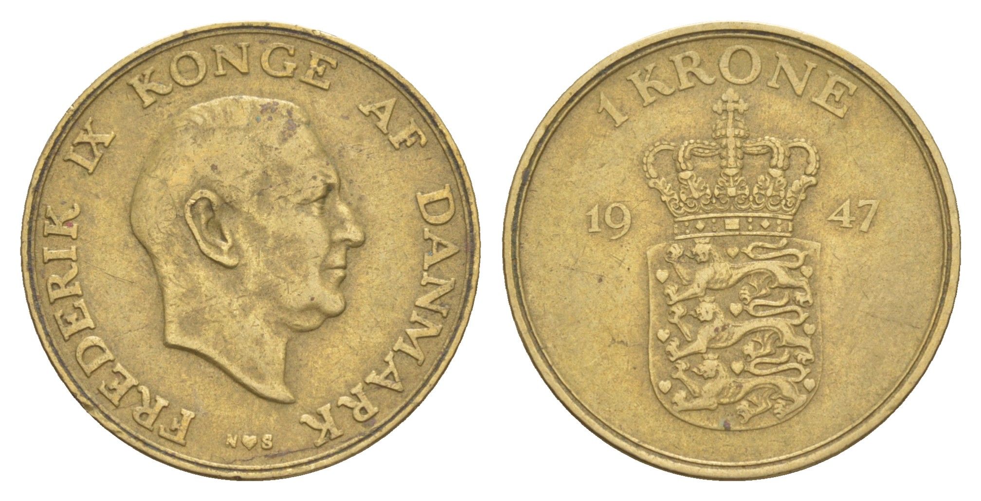 Дания 1 крона 1947 N, Кристиан X (1912-1947) KM 837 алюминиевая бронза 4654-742