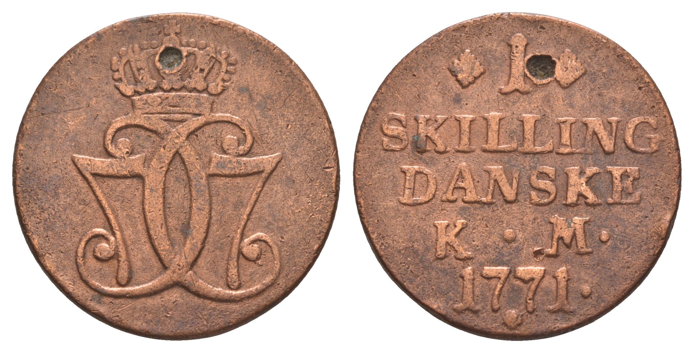 Дания 1 скиллинг 1771 Кристиан VII (1766-1808), год-тип KM 616 медь 4657-522