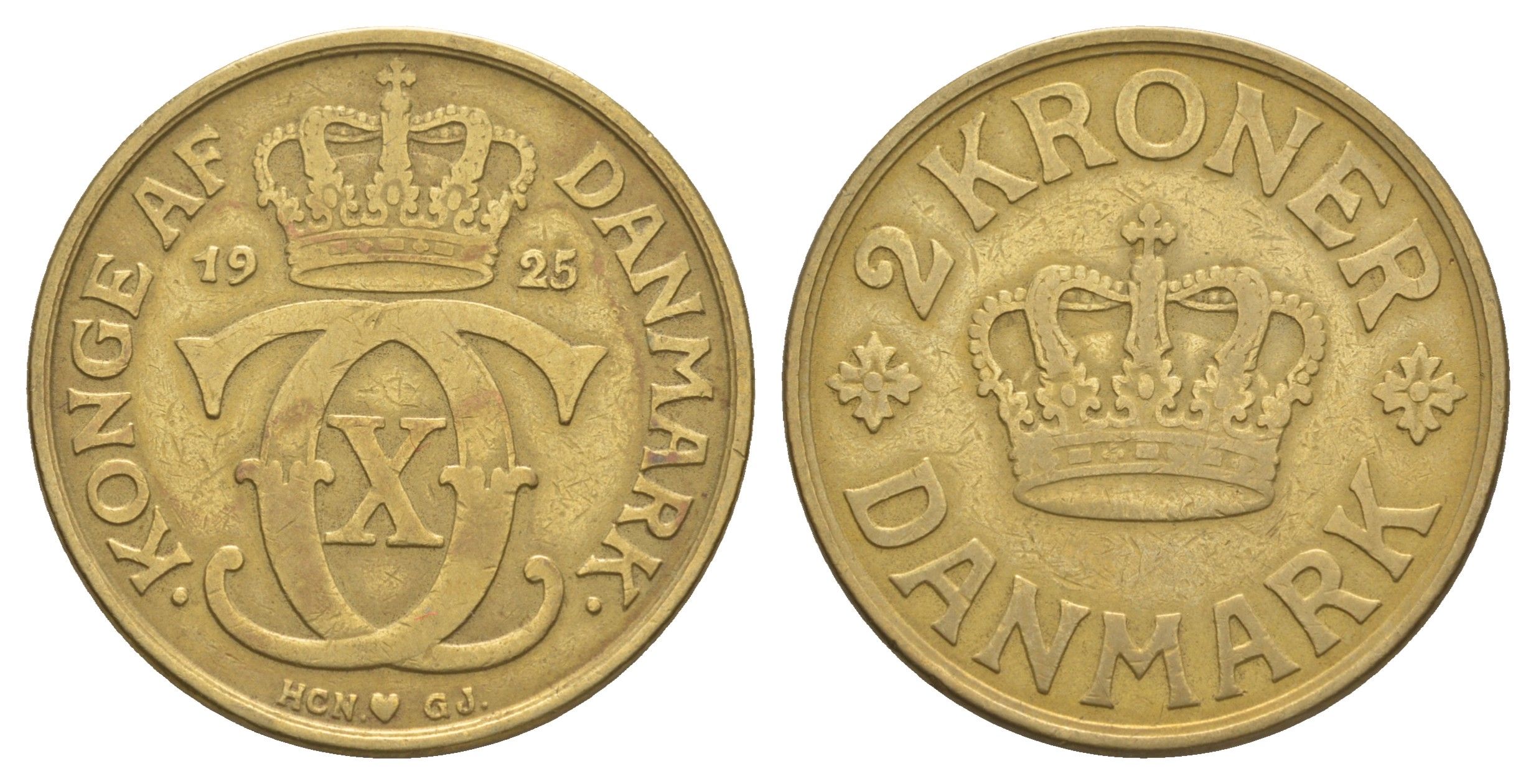 Дания 2 кроны 1925 HCN; GJ, Кристиан X (1912-1947) KM 825 алюминиевая бронза 88-1124