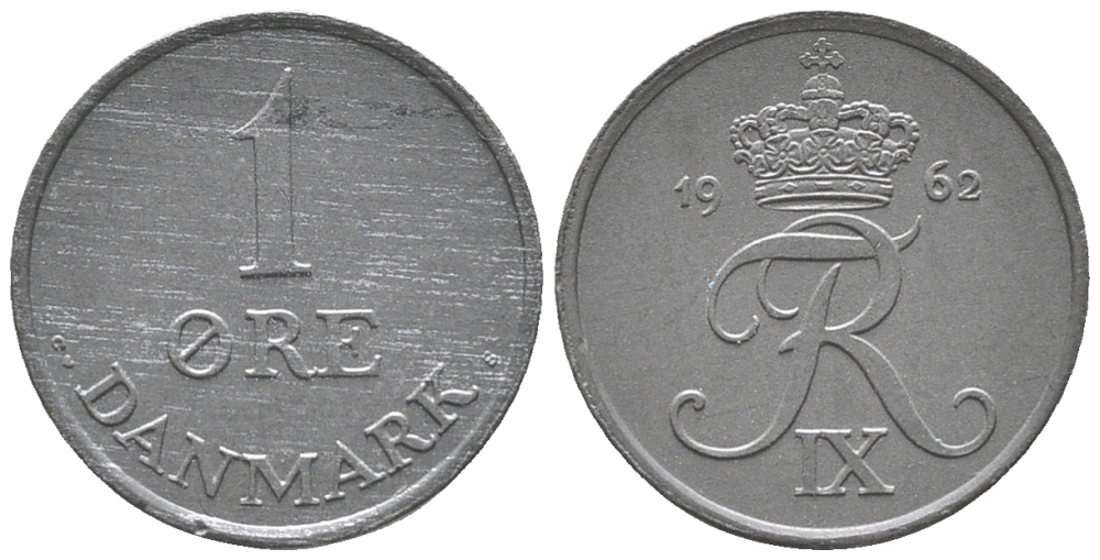 ДАНИЯ 1 ЭРЕ 1962 C; S, ФРЕДЕРИК IX (1947-1972) KM 839.2 цинк UNC 100-1128