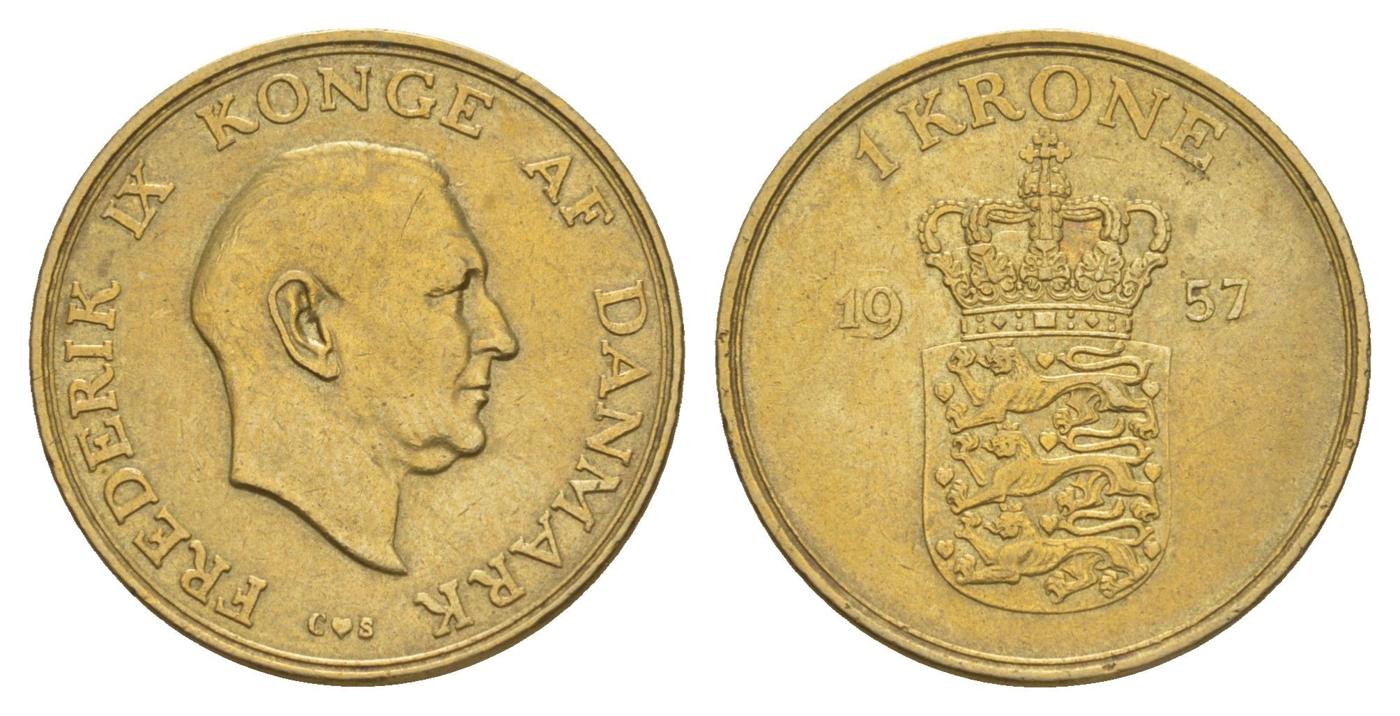 Дания 1 крона 1957 C, Фредерик IX (1947-1972) KM 837 алюминиевая бронза 4657-353