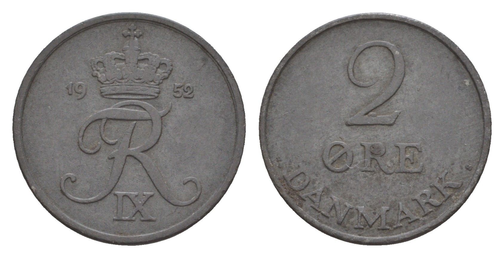 Дания 2 эре 1952 C; S, Фредерик IX (1947-1972) KM 840 цинк 4658-261